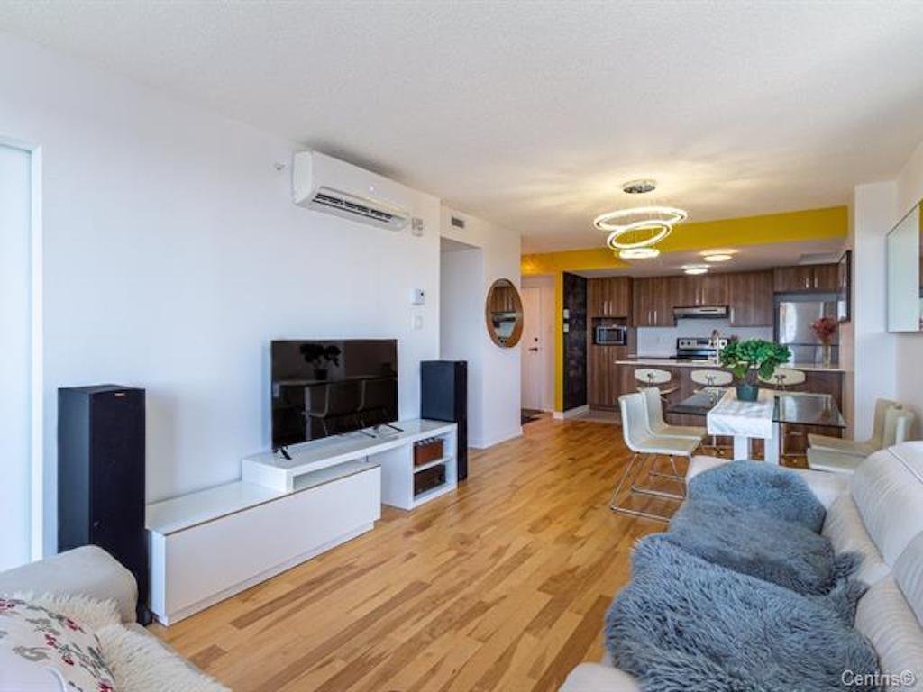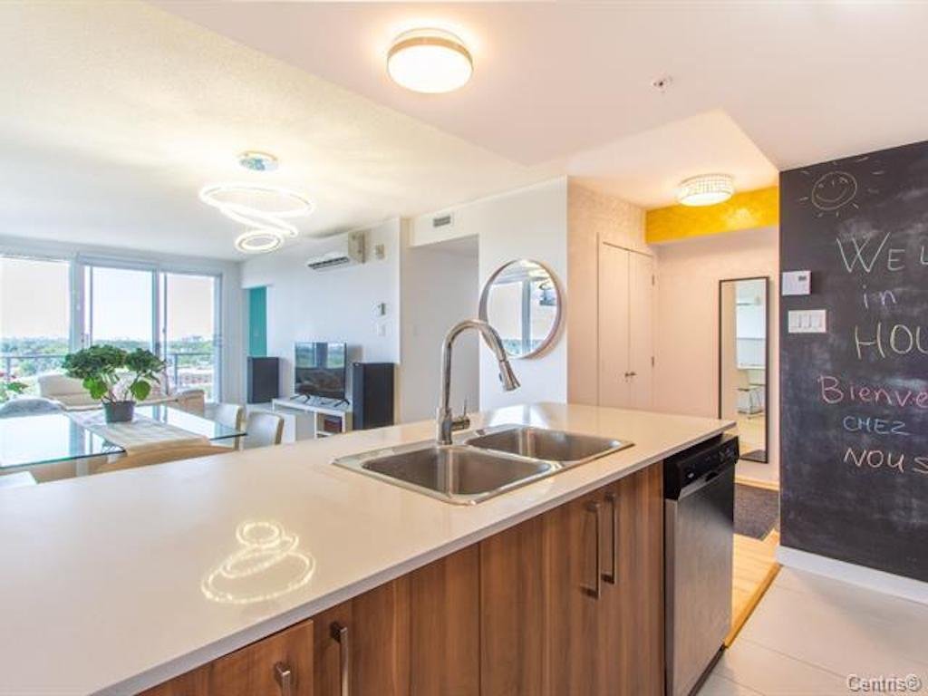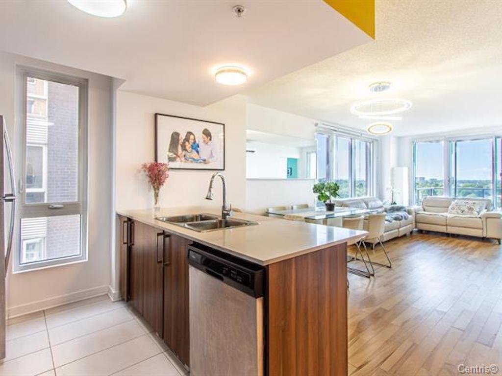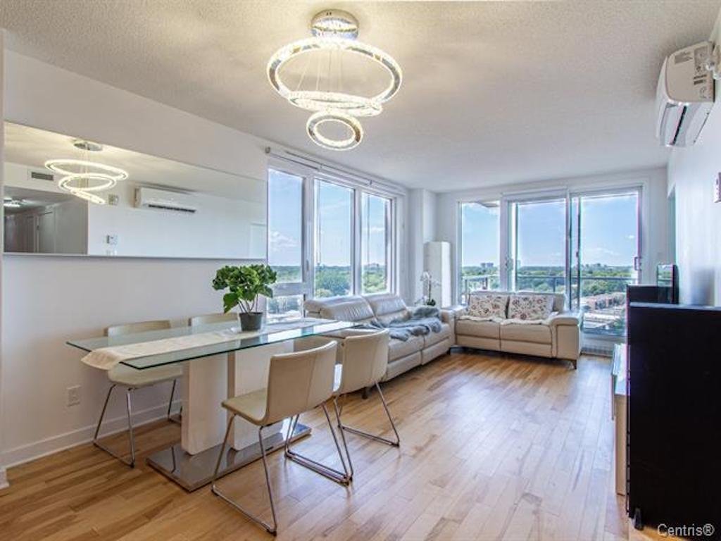 Addendum: Beautiful and sunny corner unit with breathtaking view !!! 3 closed bedroom + 1 indoor parking !!! 2e stationnement intérieur peut être disponible! Perfect location with proximity to all the amenities: (groceries, daycares, elementary & high schools, Centre Rockland, Costco, Marche Centrale, Hôpital du Sacré-Coeur de Montreal and Parc Marcellin Wilson with its beautiful arena and swimming pool) Easy access to the train and Highway 40 & 15. Well equipped gym in the building with SPA on the terrace. Gorgeous Sunset - every day !!! Don't miss this chance!