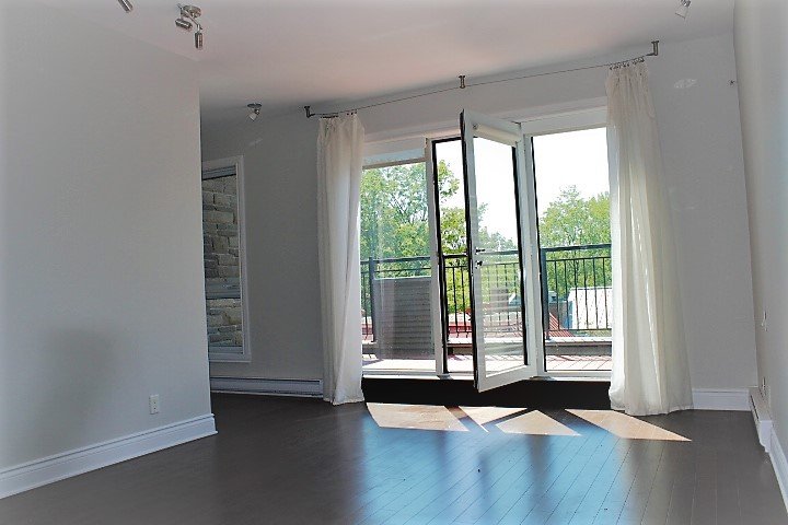 Addendum: Bright and sunny penthouse with huge 1 bedroom easily convertible into originally planned 2 bedrooms ! High-end modern finishes and large terrace with spectacular views of the Lake and Marina. Indoor parking and a balcony off the bedroom. Lachine at it's best - water, park and promenade!
